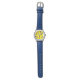 Kinderuhr aus Edelstahl mit blauem Lederarmband