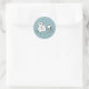 This charming, circular Peanuts sticker features a classic winter scene. The design has a soft, pale blue background and shows Snoopy, the famous beagle, standing next to a simple, slightly lopsided snowman. The snowman is made of two main snowballs and has minimal features—just three black dots for eyes and buttons, and a line for a mouth, giving it a humorous, expressionless look. Snoopy appears to be curiously looking up at his snow creation. This officially licensed sticker is a delightful piece of winter-themed merchandise, perfect for fans of the Peanuts gang, snow day fun, or adding a nostalgic accent to notebooks, water bottles, and other belongings.