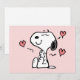 Vergessen Sie die Textnachricht – senden Sie ein Lächeln, das man tatsächlich halten kann! Diese entzückende horizontale Grußkarte zeigt Snoopy in seiner glücklichsten Pose, wie er seine Pfoten mit Freude zusammenhält, vor einem sanften pastellrosa Hintergrund. Umgeben von handgezeichneten rosa Herzen ist es die perfekte Korrespondenz für Jahrestage, Dankeschöns oder einfach nur zum Senden einer "Papierumarmung" an jemanden Besonderen. Sie wird mit einem knackig weißen Umschlag geliefert, bereit für Ihre handgeschriebene Nachricht.