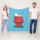 Wrap yourself in pure, cozy nostalgia! This Snoopy Doghouse Blanket is the ultimate accessory for movie night, couch surfing, or achieving Snoopy-level nap expertise. The soft, light blue fleece makes the iconic graphic pop: Snoopy blissfully napping on his bright red doghouse against a hint of green grass. It's the perfect gift for Peanuts fans of all ages and is guaranteed to be your new favorite cuddle buddy. Snuggle up and grab this blanket now—you deserve a nap this good!