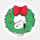 Peanuts | Snoopy-Weihnachtskranz & Schleife Runder Aufkleber