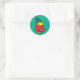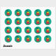 This vibrant, circular Peanuts sticker is set against a bold teal or aqua green background. The central image is of Woodstock, the little yellow bird, completely bundled up for cold weather. He is wearing a bright red puffy coat (or puffer jacket) and a coordinating striped winter beanie in teal and a darker color. This officially licensed sticker is a cute and colorful piece of seasonal merchandise, perfect for fans who love the Peanuts characters, winter themes, or adding a charming accent to gifts and belongings.