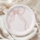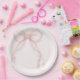 Pearl Blush Pink Bow Gold Cross Baptism Paper Plates (