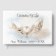 Perle in Muschel mit weißem abstrakten Rahmen für eine Beerdigung oder Gedenkgottesdienst.
