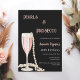 Eine moderne, stilvolle und glamouröse Einladung für eine Geburtstagsparty von Perlen und Prosecco (jedes Alter) Ein schwarzer Hintergrund mit einem Glas mit rosa Blasen und Perlen. Der Name ist mit einem modernen handgeschriebenen Stilskript geschrieben. Personalisieren Sie Ihre Party-Daten und fügen Sie sie hinzu.