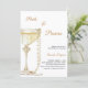 A modern, stylish and glamorous invitation for a Pearls and Prosecco Bridal Shower. A white background with a glass with bubbles and pearls. The name is written with a modern hand lettered style script. Personalize and add your party details.