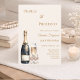 A modern, stylish and glamorous invitation for a Pearls and Prosecco birthday party (any age) An ivory background with a bottle, glass, flute with a bow with pearls. The name is written with a modern hand lettered style script. Personalize and add your party details.