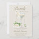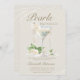 Pop den Champagner, sie heiratet! Bewundern Sie ihren Übergang von Frau zu Frau mit diesem eleganten Brautparty aus Perlen und Prosecco und einer eleganten Aquarelleinladung, die mit einem Champagnerglas voller Champagner und überhängenden Perlenketten aufwartet. Ein paar kleine Blumenelemente und grüne Blätter machen diese Einladung auch für ein Blatt- und Prosecco-Thema perfekt. Die klassische formale Kalligraphie und Hochzeitstypografie in einer Champagnerfarbe runden dieses stilvolle Design ab. Eine moderne Brautdusche, die sich perfekt für einen Brunch im Brautparty eignet. Auch ein Brautparty im Freien im Frühling oder im Sommer oder ein Cocktail-Brautparty im Innenbereich laden zum Verweilen ein. Elegant und stilvoll, wird diese Champagner-Glaseinladung in Elfenbein die zukünftige Braut perfekt begleiten, wenn sie von den MS in die MS übergeht.