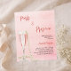 Eine moderne, stilvolle und glamouröse Einladung für ein Pearls und Prosecco Brautparty. Ein rosa Farbverlauf mit goldenen Flecken, ein Glas mit rosa Blasen und Perlen. Der Name ist mit einem modernen handgeschriebenen Stilskript geschrieben. Personalisieren Sie Ihre Party-Daten und fügen Sie sie hinzu. 1 Blatt = 1 Einladung mit Druckkante bis Kante.