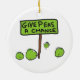 Einige Erbsen mit einem Plakat-Sprichwort "geben Erbsen eine Chance". Es könnte ökologisch sein, ein Plädoyer für Veganismus oder Anti-Krieg. Oder es könnte nur ein Erbscherz sein. Fun Design für Erbse- und Erbsenliebhaber. Gib Erbsen eine Chance!