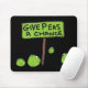 Einige Erbsen mit einem Plakat-Sprichwort "geben Erbsen eine Chance". Es könnte ökologisch sein, ein Plädoyer für Veganismus oder Anti-Krieg. Oder es könnte nur ein Erbscherz sein. Fun Design für Erbse- und Erbsenliebhaber. Gib Erbsen eine Chance!