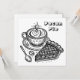 Eine quadratische Flachkarte. Eine Seite ist eine Farbseite mit einem Stück Pecan-Kuchen und einer Tasse Kaffee. Der Rücken ist leer, damit Sie ihn für sich selbst behalten und farbig machen können, oder Sie können ihn an einen Freund schicken und auf der Rückseite eine Notiz schreiben.