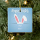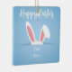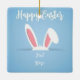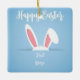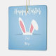 Celebrate the season with this charming, customizable Easter ornament. Featuring a cute pair of bunny ears peeking from a pocket on a soft blue polka-dot background, this square ceramic keepsake is perfect for commemorating a "First Easter" or adding a personal touch to your holiday decor. Simply add your name or a special message to create a unique gift that will be cherished for years to come.