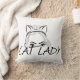 Eine einfache b&w-Abbildung einer Frau in spielerischen Katzenohren, die über die Worte "Katzenlady" herumschwirren.