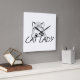 Eine einfache b&w-Abbildung einer Frau in spielerischen Katzenohren, die über die Worte "Katzenlady" herumschwirren.