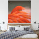 Ein Flamingo pinkelt durch seine rosa-weißen Federn. Sein Auge ist einfach sichtbar.