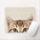 Niedliche Katze, die mit hellbraunem, texturiertem Hintergrund über die Kante pinkelt.