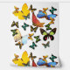 Umnehmbares Peelhalm Gelborange blaue Schmetterlinge geometrisches Muster Wallpaper. Ein tolles Gaumenprojekt für Mieter Hauseigentümer. Erstellen Sie ein personalisiertes Aussehen für Ihr Zuhause Condo Apartment Schlafzimmer oder Business. Die Wände sind mit Möbeln dekoriert. Erhältlich in texturierter und glatter Vinyl. Größe 2'x4' 2'x8' 2x10' 2'x12' und 2'x1' Uhr.