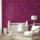 Abnehmbarer Peelhalterung Rosa Lila Orangefarbenes Muster geometrisches Tapete. Ein tolles Gaumenprojekt für Mieter Hauseigentümer. Erstellen Sie ein personalisiertes Aussehen für Ihr Zuhause Condo Apartment Schlafzimmer oder Business. Die Wände sind mit Möbeln dekoriert. Erhältlich in texturierter und glatter Vinyl. Größe 2'x4' 2'x8' 2x10' 2'x12' und 2'x1' Uhr.