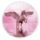 Ein wenig Fantasy & Myth mit einem Dekorakzent aus einem rosafarbenen Pegasus Flying Horse Unicorn im Ozean auf einer Keramik Knopf. Fügt einem Frisierer oder Schubladen ein einzigartiges Design hinzu.