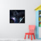 ein schwarzer Pegasus fliegt durch den Raum - eine schöne Weltraumszene mit einem blauen und einem lila Planeten und Sternen leuchten