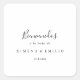 Esta pegatina cuadrada bienvenida de boda Española es perfect ta para una boda rústica. El krankño, sencillo y elegante, presenta una tipografía clásica y linda en blanco y negro. Estas etiquetas son perfect tas para los bolsos de bienvenida y las bodas de destino.