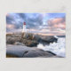 Peggy's Cove Leuchtturm bei Sonnenuntergang mit dramatischen Wolken und einem Surf.