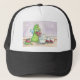 Niedlicher kleiner grüner Drache, der Erdbeeren in gepeitschte Creme eintaucht.