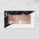 Ein elegantes modernes, stilvolles kundenspezifisches Logo peitscht Geschäftskarte mit eleganter Skriptbeschriftungs-Arttypographie in der Imitat-Rosen-Goldfolie auf einem trendy und eleganten Schwarz-weißen Marmorhintergrund. Addieren Sie Ihre Sozialmedien.