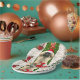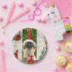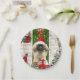 Pekingese Weihnachten sitzend draußen geschmückt Zuhause mit Weihnachtskranz, Weihnachtsbaum ist ein perfektes Weihnachtsgeschenk für Hundefreunde.