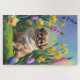 Pekingese Dog Spring Blumen Malerei Puzzle