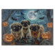 Entfesseln Sie den unheimlichen Geist mit diesem unheimlichen Halloween-Design, das eine Hundepackung unter einem dunklen, mondbeleuchteten Himmel bietet, umgeben von fliegenden Fledermäusen und glühenden Kürbissen. Ideal für diejenigen, die mit ihren wütenden Freunden eine Touch voller Furcht Liebe haben!