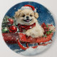 Pekingese Hund in Sledge Lass es Schnee Weihnachte Button