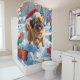Pekingese Hund läuft im Schnee mit Weihnachtshut Duschvorhang