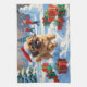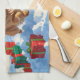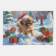 Pekingese Hund läuft im Schnee mit Weihnachtshut Geschirrtuch