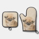 Pekingese Malerei Fawn Niedlich Original Haustier Ofenhandschuh & Topflappen-Set