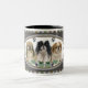 Die Pekingese Tatzen-Druck-Tasse, die drei Pekingese Welpen im ovalen Rahmen kennzeichnet, zeichnete mit pawprints.