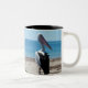 Pelican auf einem Felsen, Zweifarbige Tasse