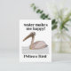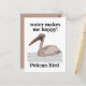 Pelican Bird Postcard Original Design von Nisha Prabhu. Schicken Sie ein wenig Natur mit dieser charmanten pelikanischen Postkarte. Ideal, um eine kurze Notiz zu senden, ein Dankeschön, oder einfach nur hallo zu sagen. Ein schönes Design für Vogelliebhaber und alle, die die Fauna der Küste schätzen.