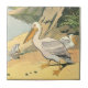 Der Pelican, "Le pélican", am Strand am Meer mit anderen Vögeln, die in der Luft fliegen zwischen den Felsen, wo sie leben. Ein frisch gezogenes Babypelikan hält den Kopf im Wasser und sucht nach Fisch zum Essen. Kinderbuch-Illustration des französischen Künstlers Benjamin Rabier.