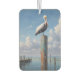 Pelikan an einem verwitterten Dockingpol Autolufterfrischer