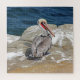 Ein wunderschönes Pelikan, das einen Spaziergang im Ozean auf diesem wunderbaren Rätsel macht.