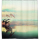 Dieser Duschvorhang hat zwei Pelikane auf ihm abgebildet.