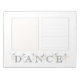 Das Design besteht aus einem ausgekleideten Bereich und einem blassrosa Bereich. Sechs Ballerinas in blassrosa Tutus Pose in verschiedenen Ballettpositionen rund um das Wort "Tanz".