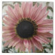 Diese phantastische Kachel zeigt ein schönes Foto einer blass rosa Sonnenblume. Die Sonnenblume ist von Natur aus rosa und die Blätter haben einen hellrosa Außenring und einen dunkelrosa Innenring. Die Mitte, in der die Samen sind, ist schwarz. Dieses Foto wurde in einem Garten aufgenommen.