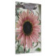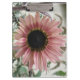 Diese phantastische Zwischenablage zeigt ein schönes Foto einer blass rosa Sonnenblume. Die Sonnenblume ist von Natur aus rosa und die Blätter haben einen hellrosa Außenring und einen dunkelrosa Innenring. Die Mitte, in der die Samen sind, ist schwarz. Dieses Foto wurde in einer Karte aufgenommen