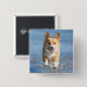 Pembroke-Walisercorgi-Hund, der auf den Strand Button