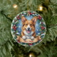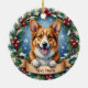 A beautiful, ultra-detailed Christmas ornament design featuring a realistic portrait of the breed centered within a soft, festive winter frame. This elegant design includes pine branches, red berries, and snowflakes against a snowy backdrop, illuminated by warm holiday lighting. The balanced, round composition includes clear space below the dog for customization.