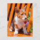 Pembroke Welsh Corgi Welpe sitzt auf Parkbank Postkarte