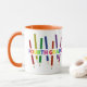 Dies ist eine Tasse für einen Lehrer der vierten Klasse mit mehrfarbigen Bleistiften und den Wörtern der vierten Klasse über die Bleistifte. Dies würde eine großartige Unterstützung von der Schule, den Lehrern oder dem Ende des Jahres sein.